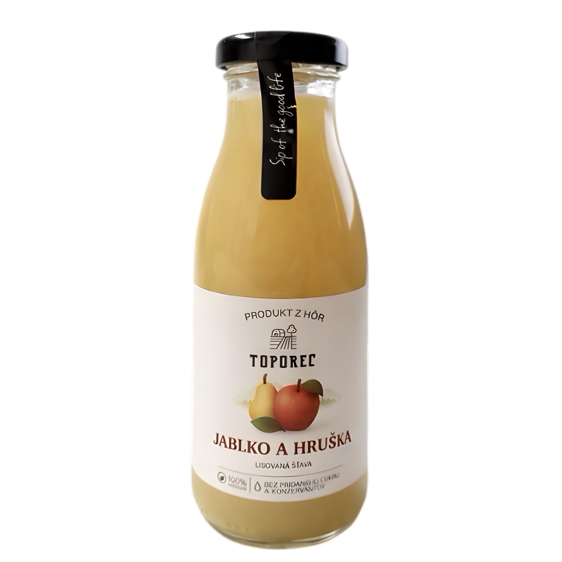 Jablkovo-hrušková šťava, lisovaná, pasterizovaná. Prirodzene zakalená. Nie je z koncentrátu. Obsahuje iba prirodzene sa vyskytujúce cukry. Chuť a farba závisí od odrody použitých jabĺk.