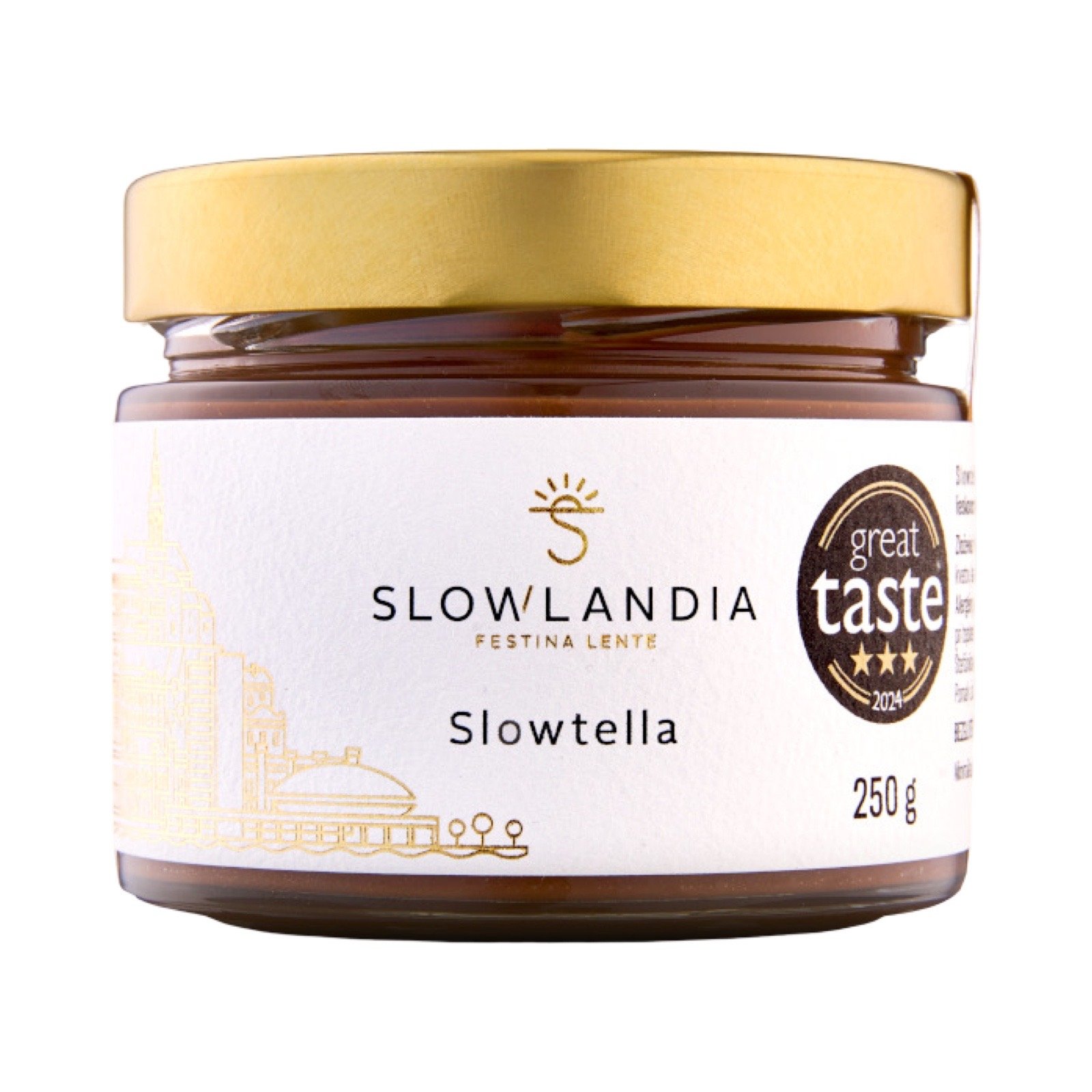 Slowtella je lahodný a jemný krém z lieskovcov a kakaa, vyrobený na Slovensku. Obsahuje 66 % lieskových orieškov a prémiové BIO kakao z Peru, ktoré mu dodáva bohatú a intenzívnu čokoládovú chuť. Je sladený iba jemne, cukrom z kokosových kvetov. Produkt je vegánsky a neobsahuje palmový olej, mlieko ani sójový lecitín. Je vhodný na chlieb, palacinky, do dezertov alebo na priamu konzumáciu.