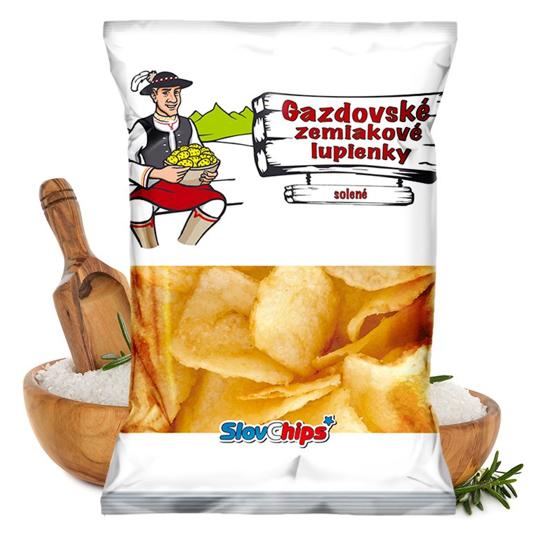 Gazdovské zemiakové lupienky solené 70g Tradičné zemiakové lupienky bez chemických prísad. Zemiakové lupienky sú vyrobené z kvalitných zemiakov. Bez konzervačných a prídavných látok. S obsahom vitamínu E a horčíka.
