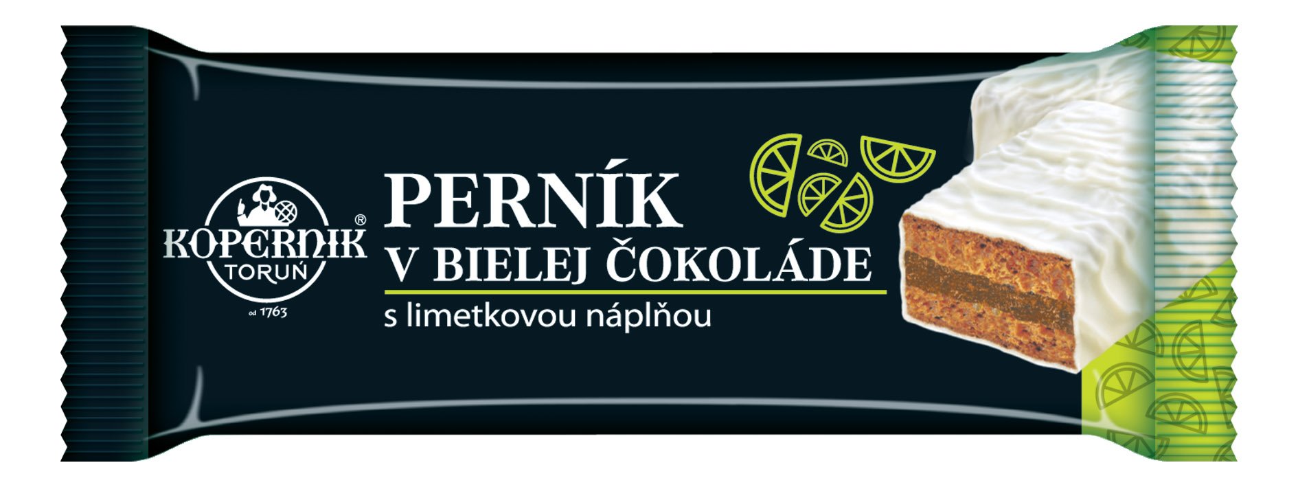 Náplň s príchuťou limetky 33% (cukor, zahustený jablkový pretlak, koncentrát z limetky 0,3%, regulátory kyslosti: kyselina citrónová a kyselina vínna, zahusťovadlo: pektíny, aróma, konzervačné látky: sorban draselný a pirosiričitan sodný, farbivo: kurkumín), biela čokoláda 30% (cukor, kakaové maslo, sušené plnotučné MLIEKO, sušená SRVÁTKA, emulgátor: SÓJOVÝ lecitín, aróma), PŠENIČNÁ múka, RAŽNÁ múka, cukor, farbivo: obyčajný karamel, kypriaca látka: uhličitany amónne, perníkové korenie, jedlá soľ, regulátor kyslosti: kyselina citrónová. Alergény sú vyznačené tučným písmom.