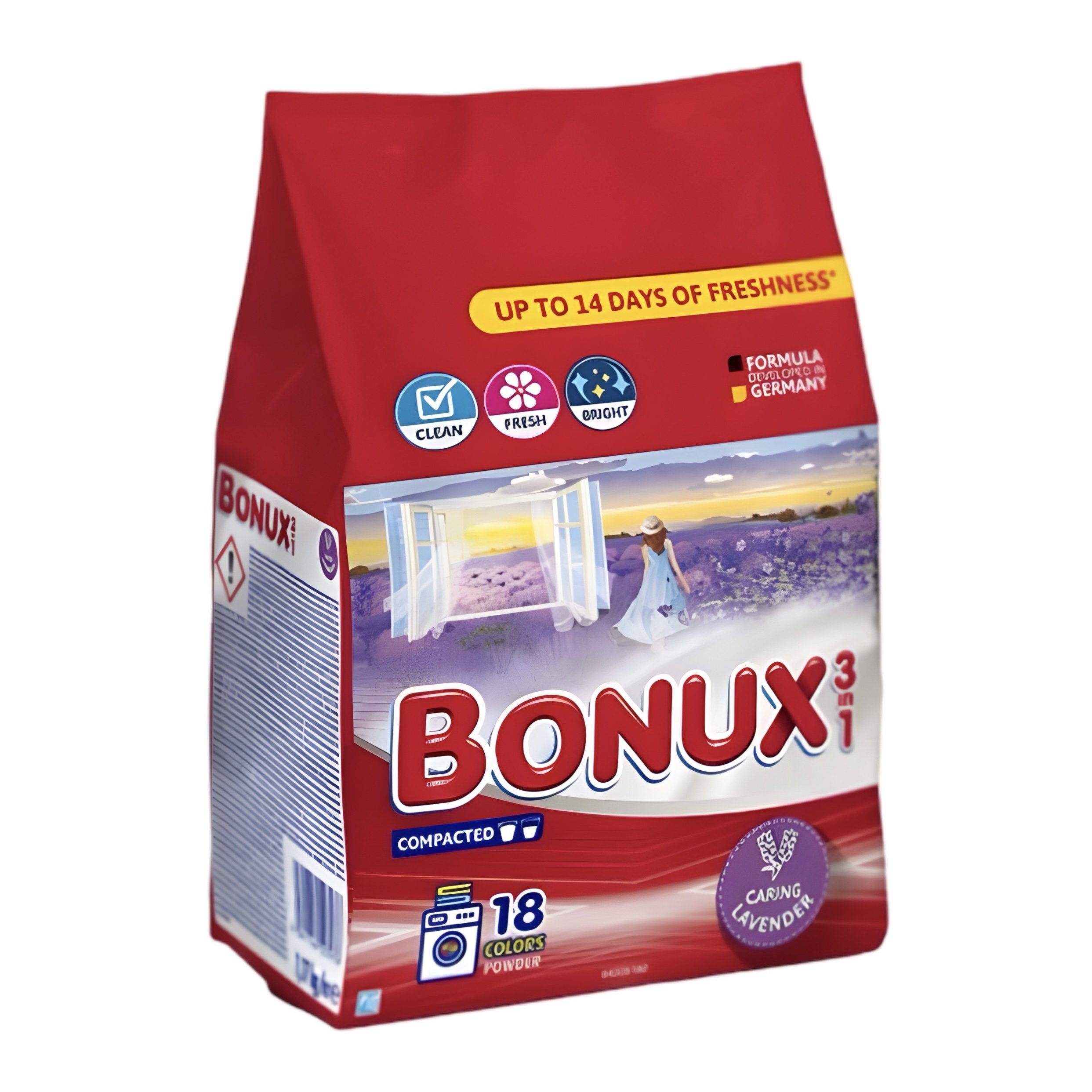 Prací prášok, Nový Bonux inšpirovaný vôňou z prírody. Vôňa levandule prevonia prádlo a zabezpečí jeho sviežosť až na 14 dní.