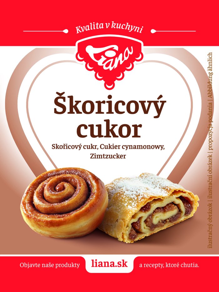Škoricový cukor je aromatická zmes jemného cukru a mletej škorice. Ideálny na posypanie šišiek, lievancov, ovocných knedlí, palaciniek, múčnikov, kávy, alebo na ochutenie krémov a vareného vína. Dodá pečivu hrejivú, sladko-korenistú arómu.
