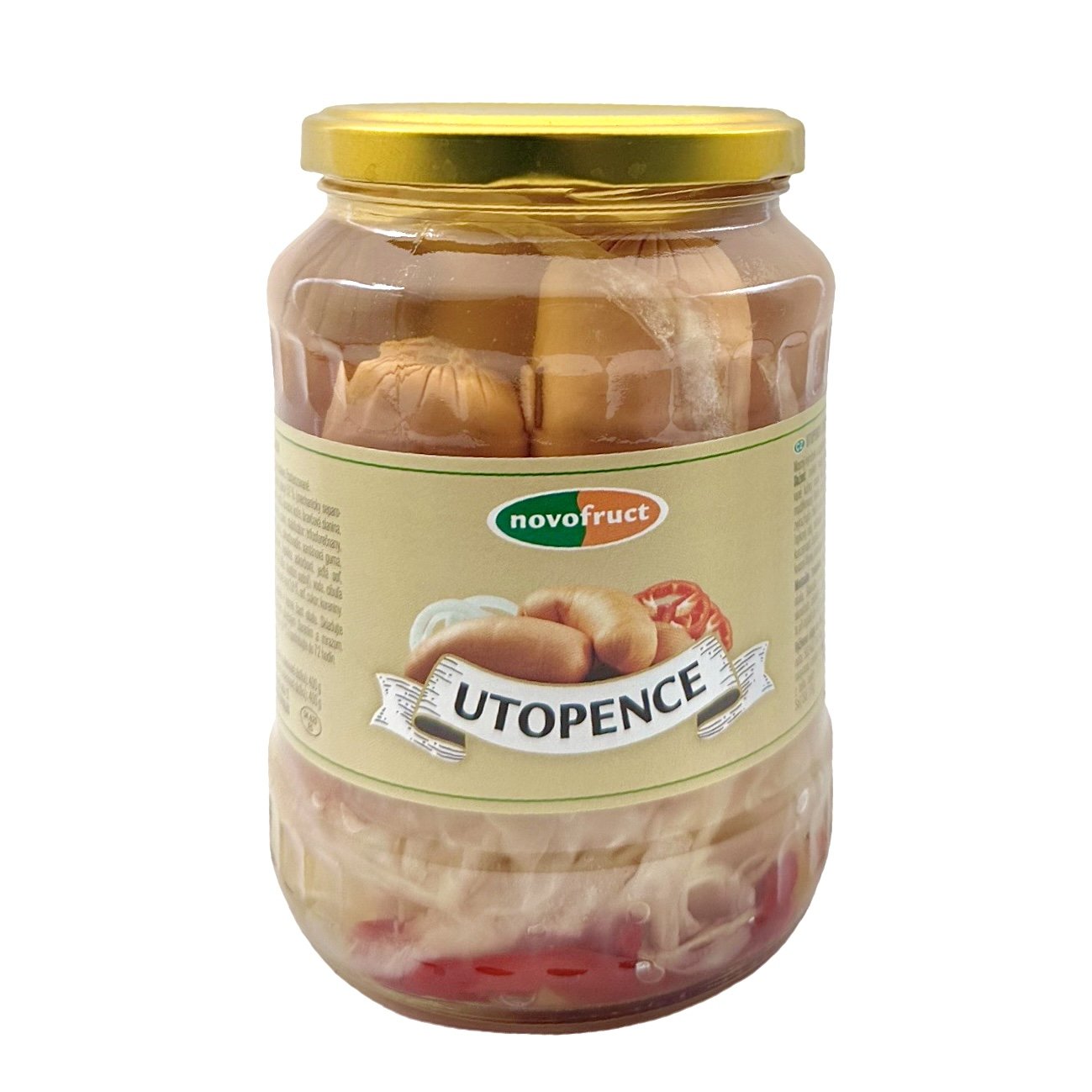 Údenina 47, 8% hm. (mechanicky separované hydinové mäso, bravčové mäso, voda, slanina, bravčové kože, soliaca zmes (soľ, stabilizátor E 250), zemiakový škrob, koreniaci prípravok (glukózový sirup, stabilizátor E451, zvýrazňovače chuti E621, E 325, antioxidant E 316, extrakty korenín), cesnak), Voda, Kvasný liehový ocot, Cibuľa 15% hm., Cukor, Soľ, Paprika, Horčičné semeno, Bobkový list, Obsah tuku v údenine max. 40 % hm. Alergény sú vyznačené tučným písmom.