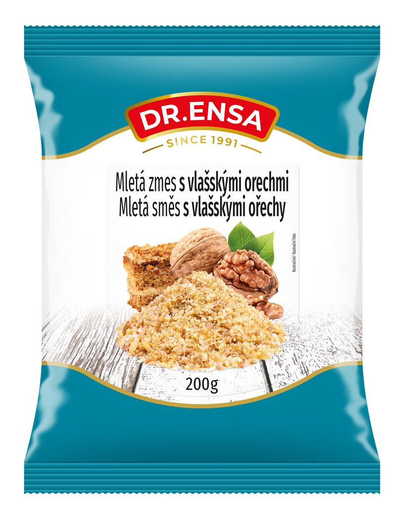 Zmes mletých vlašských orechov pripravená na okamžité použitie. Ideálna prísada do koláčov, plniek, závinov (štrúdieľ), vianočného pečiva, posypov alebo ako prídavok do raňajkových kaší a müsli. Orechy dodávajú pečivu bohatú arómu a nutričnú hodnotu.